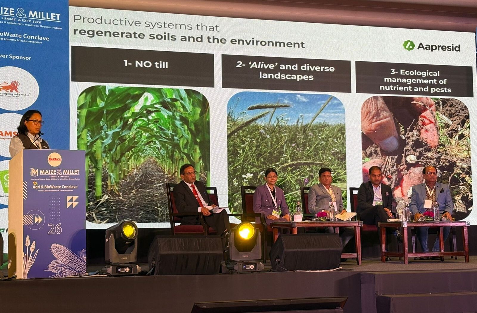 Además de participar en la Conferencia Global de Mujeres, Díaz, aprovechó que justo se estaba haciendo un congreso de la cadena del maíz y el mijo (una especie de Maizar) y también disertó allí, convocada por el agregado agrícola de la embajada argentina en India.