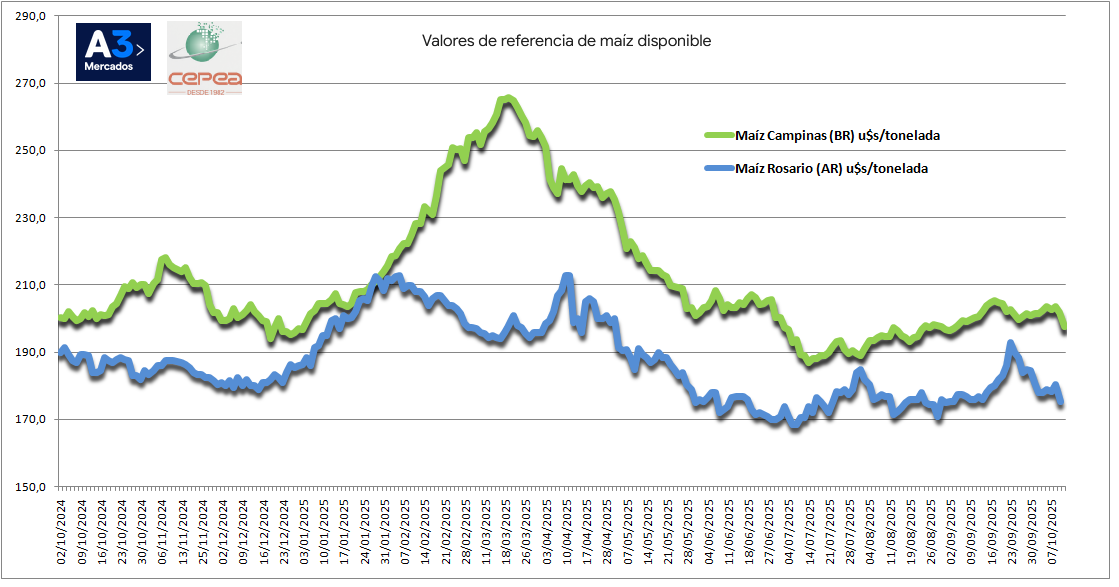 “Como los exportadores brasileños deben competir con una demanda interna cada vez más intensa, el costo de llevarse una tonelada hacia afuera aumenta, restándole competitividad en el mercado FOB. Esto limita el saldo exportable brasilero, escenario que ocurrió sobre fines del año pasado, cuando Argentina se posicionó como originador clave de maíz en Sudamérica”, destaca.