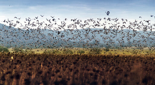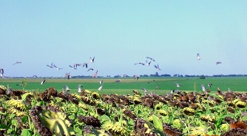 A diferencia de la cotorra -que suele alimentarse del girasol en sus estadíos tempranos-, la paloma actúa en grandes colonias que pueden recorrer decenas de kilómetros y causar daño a los cultivos ya maduros de diferentes regiones.