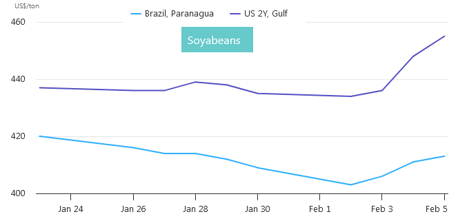 A pesar de ese “freno”, el valor FOB de la soja brasileña refleja una distancia creciente del FOB estadounidense, lo que se explica tanto por una cuestión estacional como por el impulso que el presidente de EE.UU. Donald Trump promete darle a la producción local de biodiésel y, por extensión, a la demanda interna de poroto de soja.