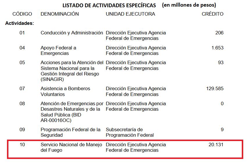El problema es que el presupuesto 2026 asignado al Sistema Nacional de Manejo del Fuego es de apenas  20.131 millones de pesos, una cifra nominal 7,7 inferior a la correspondiente a la del presupuesto 2024. Si se tiene en cuenta que la inflación oficial acumulada entre 2024 y 2025 es del 185%, entonces está claro que el área dedicada a atender situaciones de emergencia ígnea está desfinanciada.