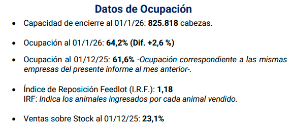 “El 2026 podría mostrar una oferta más ajustada de hacienda, lo que contribuiría a sostener precios firmes. Ese escenario, combinado con costos de alimentación relativamente contenidos, alienta el engorde y explica por qué los corrales comenzaron el año con un nivel de ocupación inusualmente alto”, sostuvo Eiras.