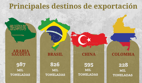 Los aliados clave son Brasil y China, que juntos han absorbido el 70% de lo exportado las últimas campañas. Sin embargo, este año hubo también un nuevo impulso desde el este, gracias a la demanda de Arabia Saudita, que se consolidó como el principal destino en términos de volumen: allí se enviaron unas 987.000 toneladas, por encima de las 826.000 que absorbió Brasil y las casi 600.000 vendidas a China.