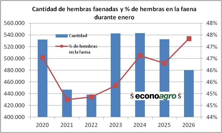 Andrés Halle, analista de la consultora Econoagro y autor del libro reciente “Ganadería en números”, destacó como dato muy favorable que, a pesar de la caída de la faena en 10%, “hay menos hembras enviadas a frigorífico que 2020/23/24/25, a pesar de que ahora se presenta como “el mayor porcentaje de hembras en la faena”.