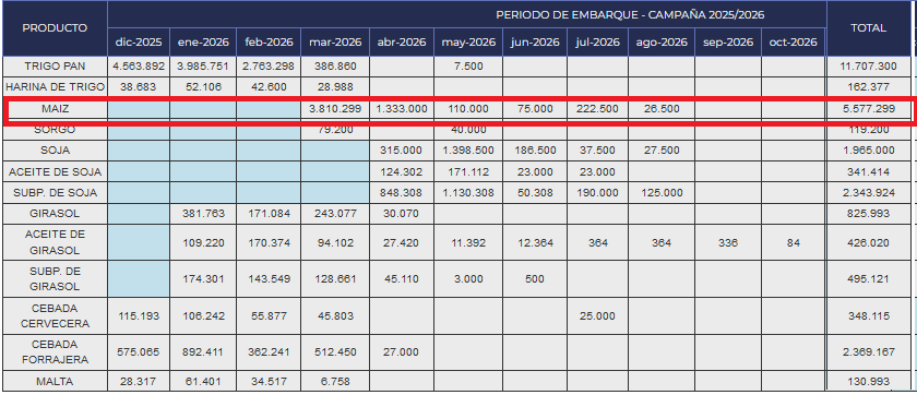 En cualquier caso, el adelantamiento de compras de maíz 2025/26 por parte de los exportadores resultó una gran estrategia comercial, ya que tienen en su poder maíz adquirido a precios mucho menores que los vigentes en la actualidad (¡y en plena cosecha del cereal!).