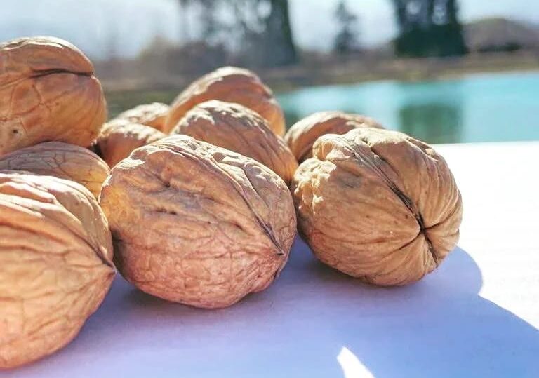 En la finca hicieron dos perforaciones y montaron un sistema de riego por goteo dividido en paneles. El agua se almacena en un estanque, se mantiene limpia y desde ahí se distribuye por esclusas, regando por áreas para exprimir cada litro. La planta toma lo que necesita y la nuez responde: color claro, tamaño parejo y un sabor que justifica todo el esfuerzo. Para eso también se necesitan al menos 1.800 horas de frío, algo que en Guanchín no es problema ya que las nevadas invernales, incluso hasta entrado septiembre, son parte del calendario.