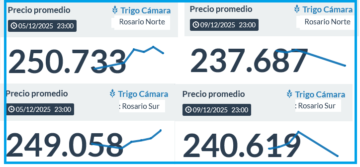 Al finalizar la jornada, la plataforma Sio Granos evidenció que los precios negociados por el trigo disponible con entrega en las terminales del Gran Rosario finalizaron este martes con bajas con respecto al viernes pasado (el lunes fue feriado en la Argentina).