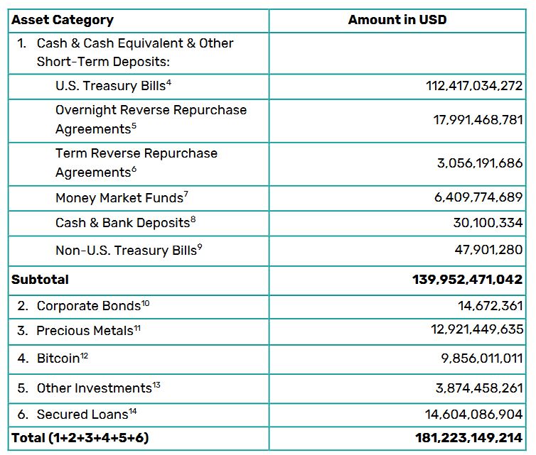 El último informe de reservas publicado por Tether, correspondiente al pasado 30 de septiembre, indicaba que la compañía tenía bitcoin por un monto entonces equivalente a 9856 millones de dólares.