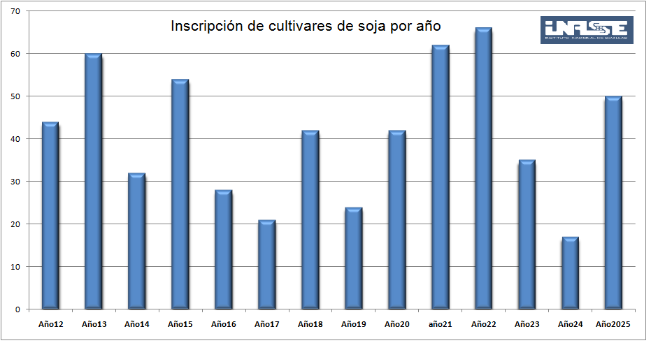 Luego de que en 2024 se inscribieran apenas 17 cultivares de soja en el Registro Nacional de Cultivares (RNC) del Instituto Nacional de Semillas de la Argentina (Inase), en 2025 la cifra se recuperó para alcanzar las 50 variedades.