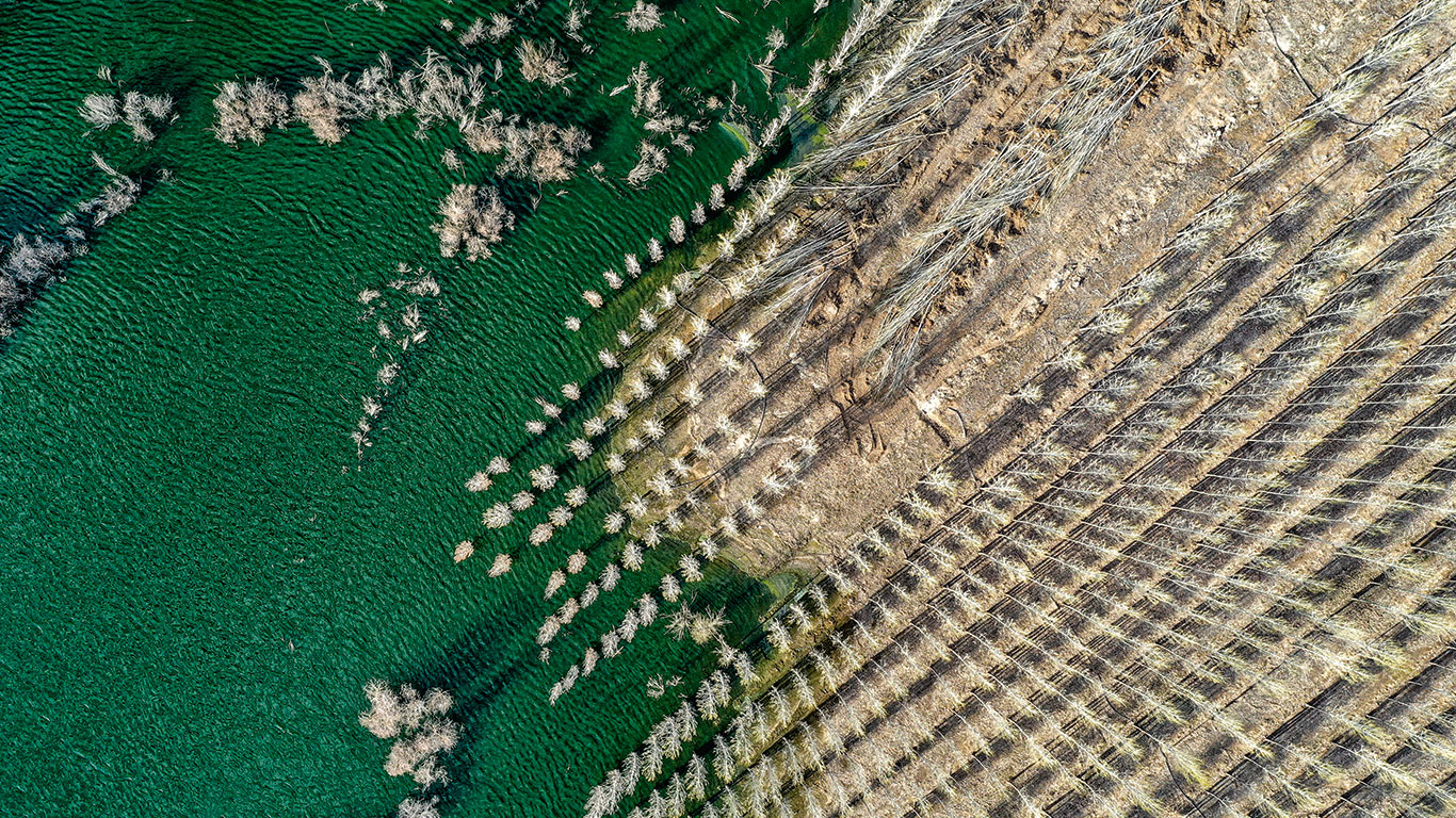 El primer paso es el de la preparación del suelo, en el que se busca estabilizar las dunas móviles antes de sembrar. Para ello, se usa la técnica del “enrejado de paja”, que consta de clavar cuadrículas de paja de trigo o arroz, generalmente de un metro cuadrado, para reducir la velocidad del viento al ras del suelo, evitar que la arena se desplace y ayudar a contener la humedad.