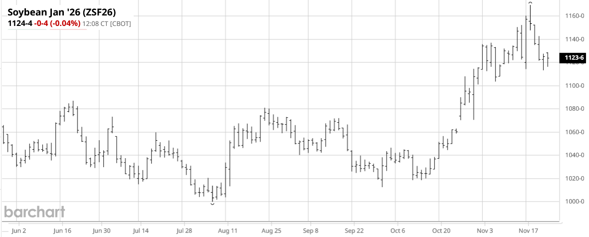 A fines de octubre el secretario del Tesoro de EE.UU., Scott Bessent, llegó a declarar que China se había comprometido a comprar 12 millones de toneladas de soja estadounidense entre noviembre y enero de 2026.