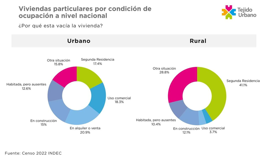 “En las ciudades, las viviendas que se encuentran deshabitadas al momento del censo lo están en su mayoría por encontrarse en venta o alquiler, porque se las utiliza como consultorio, comercio u oficina, o porque son usadas como segunda vivienda o de fin de semana.