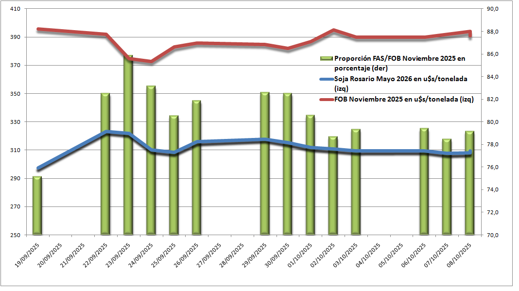 El último día del mes pasado llegaron a representar el 82,5% del valor FOB de la fecha, mientras que el 1 de octubre esa proporción fue del 80,6%. A partir del 2 de octubre ya no pudieron volver a superar el nivel del 80%.