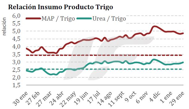 La pérdida de competitividad relativa del cultivo de trigo respecto del poder de compra de fertilizantes es un dato preocupante si se tiene e cuenta que los niveles de proteína y gluten logrados en la campaña 2025/26 son bajísimos debido en gran medida a fertilizaciones deficientes.