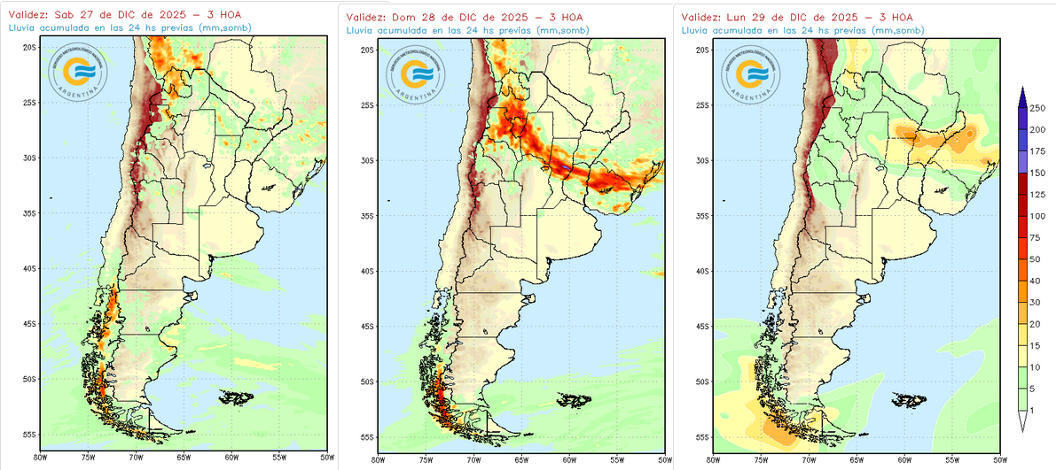 “El norte de la Argentina continuará con condiciones muy inestables más allá del fin de semana y se espera que entre hoy y el cierre de 2025 haya sectores donde los acumulados sean de entre 100 y 200 milímetros de precipitación, sin descartar máximos localmente superiores”, añadió.