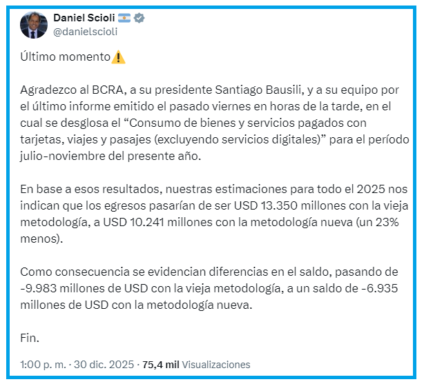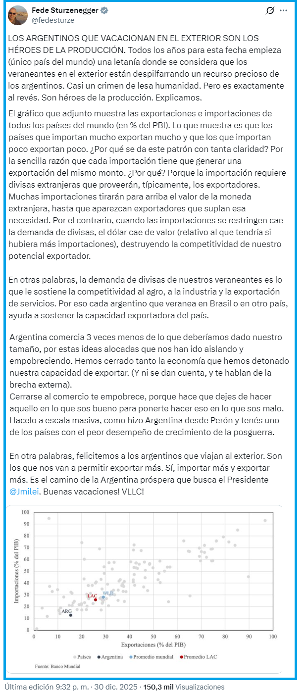 El ministro de Desregulación y Transformación del Estado, Federico Adolfo Sturzenegger, se equivocó de fecha y publicó una broma del “día del inocente” en la noche de 30 de diciembre en lugar de hacerlo el 28. Otra posibilidad –teniendo en cuenta que el comentario se subió a las redes sociales a las 21.32 horas de ayer– es que haya comenzado a brindar con un día de anticipación.
