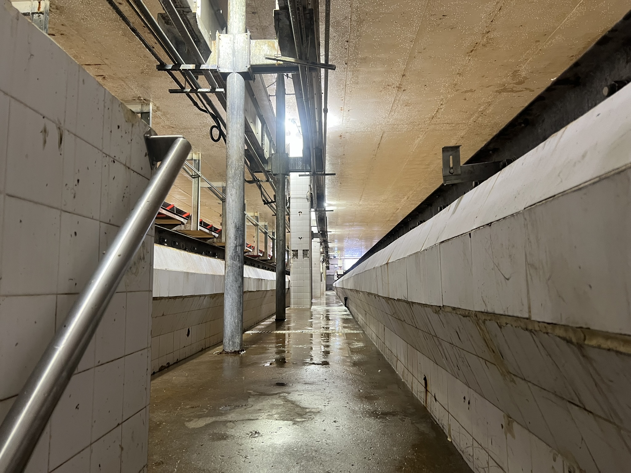Tras el paso por los tableros de control, lo primero que se siente al ingresar a la sala de germinación es un olor muy fuerte. Eso es producto del dióxido de carbono que continuamente liberan las semillas ahí dentro, por lo que es necesario contar con un sistema de ventilación constante, tanto fuera como dentro de los piletones.