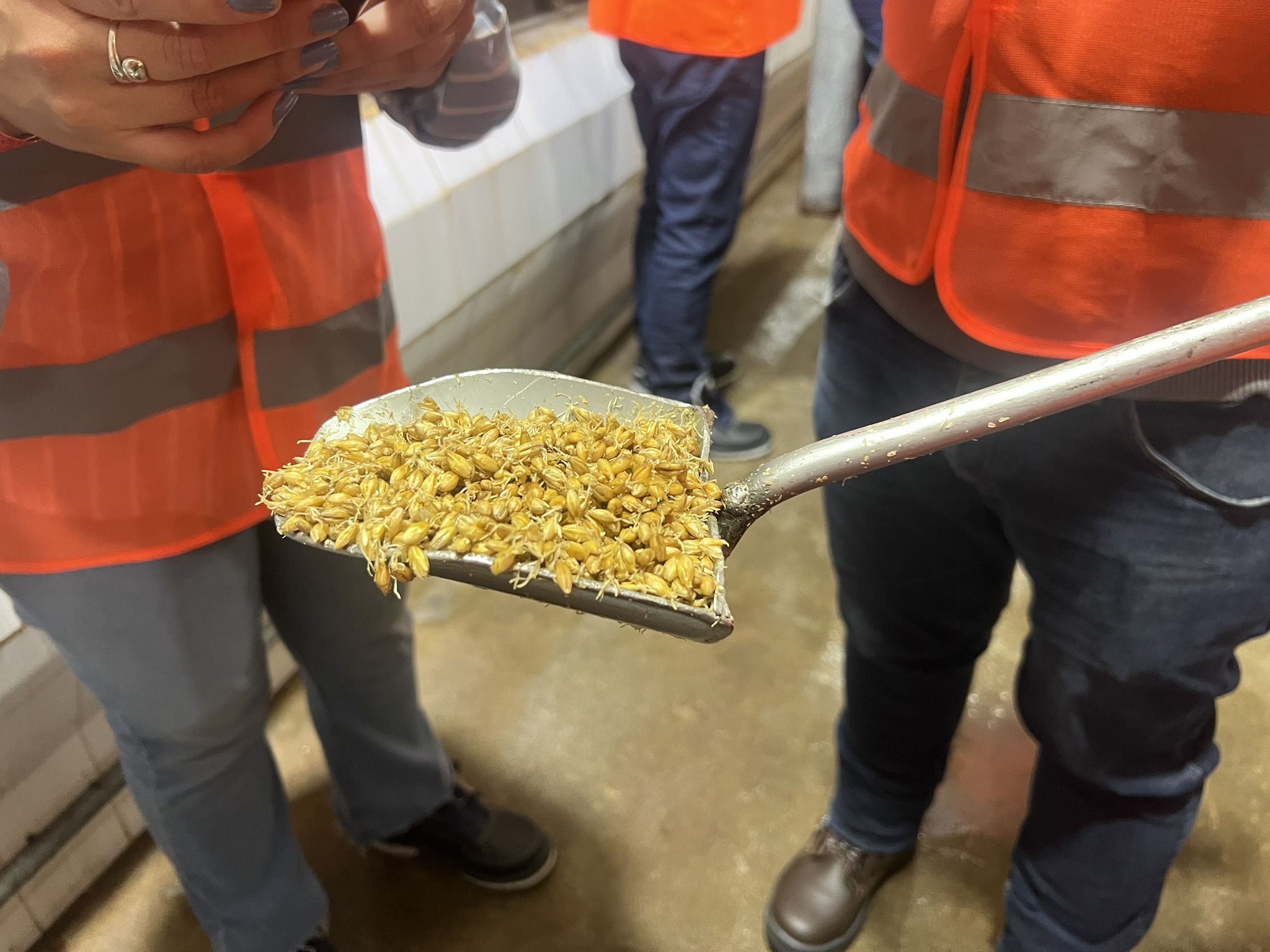 En la recorrida por la planta, la gerenta de producción, Iara Orellano explicó que “básicamente lo que se hace en la maltería es un proceso de germinación controlada para disponibilizar los macronutrientes presentes en la cebada”. Para que eso suceda, primero hay que remojar los granos, estacionarlos por un breve lapso y luego secarlos.