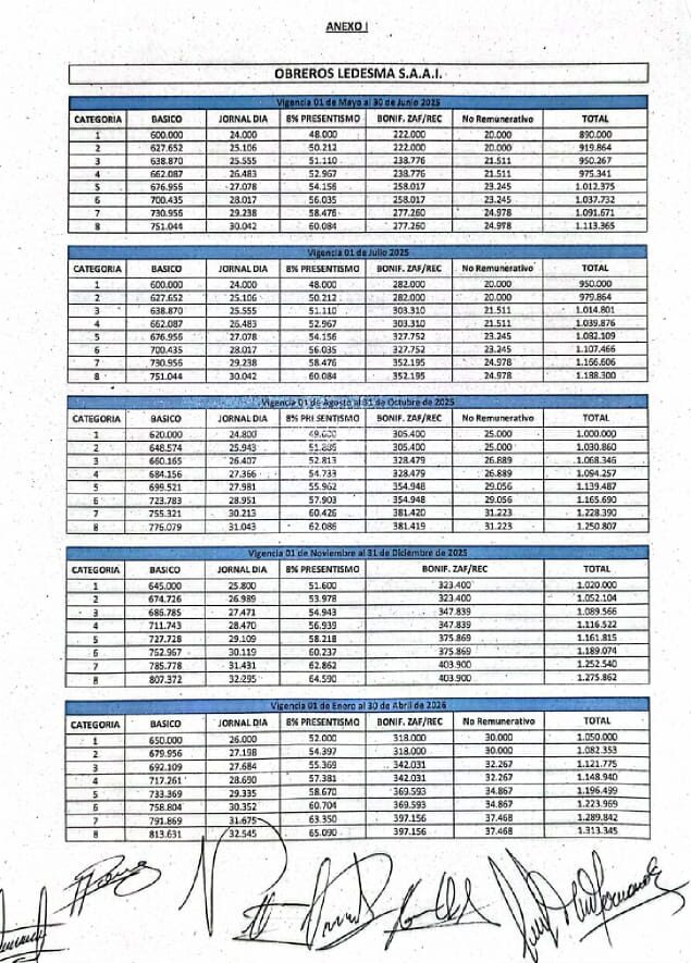 Lazarte hizo referencia a que la comisión sindical actual de Ledesma cerró unas paritarias 2025/26 que ubica a los trabajadores de esta empresa como los peor remunerados de toda la actividad.