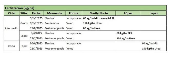 ¿La receta para lograr buenos rendimientos sin resignar calidad? Los sitios, todos con potencial productivo elevado y rotaciones adecuadas, fueron gestionados con un paquete tecnológico óptimo que incluyó nitrógeno incorporado a la siembra con aplicaciones adicionales en postemergencia y en el caso de Grutly Norte también en presiembra.