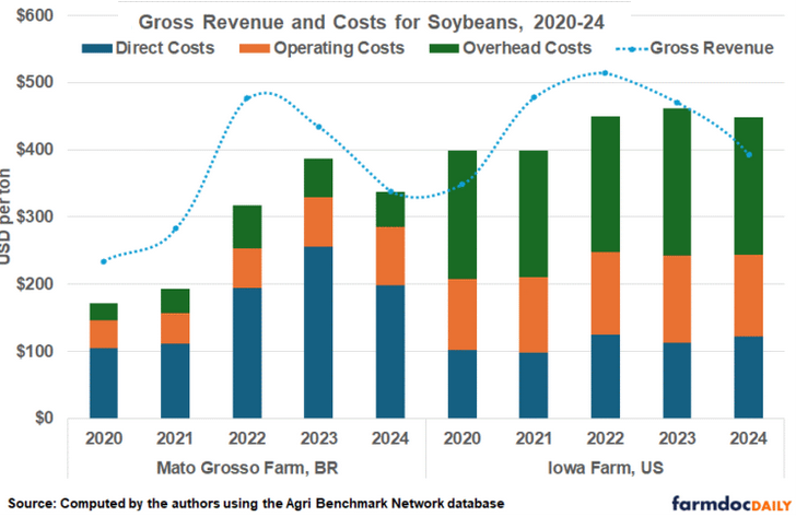 “En general, los costos totales fueron consistentemente más altos en la empresa agrícola estadounidense que en la brasileña durante el período 2020-2024, incluso con los sustanciales aumentos de costos registrados en Brasil a partir de 2022”, señala el documento.