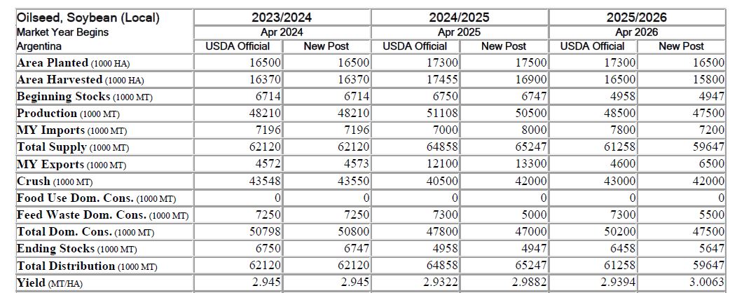 En lo que respecta a la nueva campaña 2025/26, los ténicos del USDA presentes en la Argentina elevaron su pronóstico para las exportaciones de soja en un millón de toneladas para ubicarlas en 6,5 millones, lo que implica que prevén que la demanda china de poroto argentino seguirá firme.