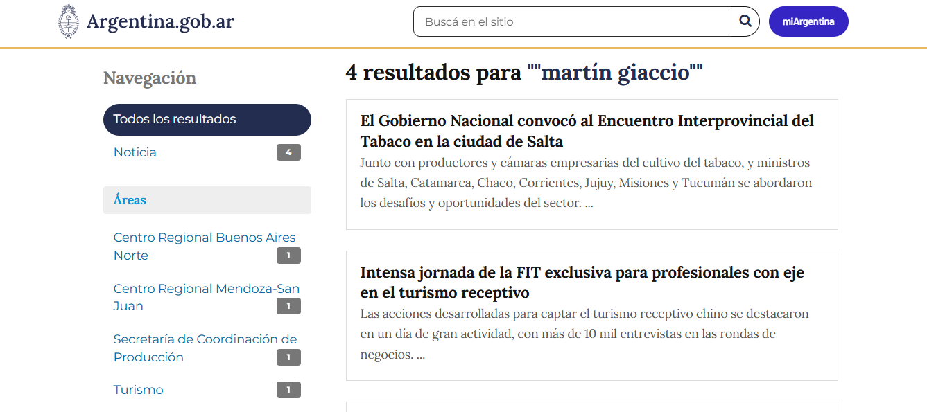 Tal es la inexistencia (suponemos premeditada de parte de un gobierno que eliminó gran cantidad de programas sociales vinculados al agro) de Martín Giaccio en la gestión, que en el buscador de la página oficial del Poder Ejecutivo su nombre aparece apenas cuatro veces.