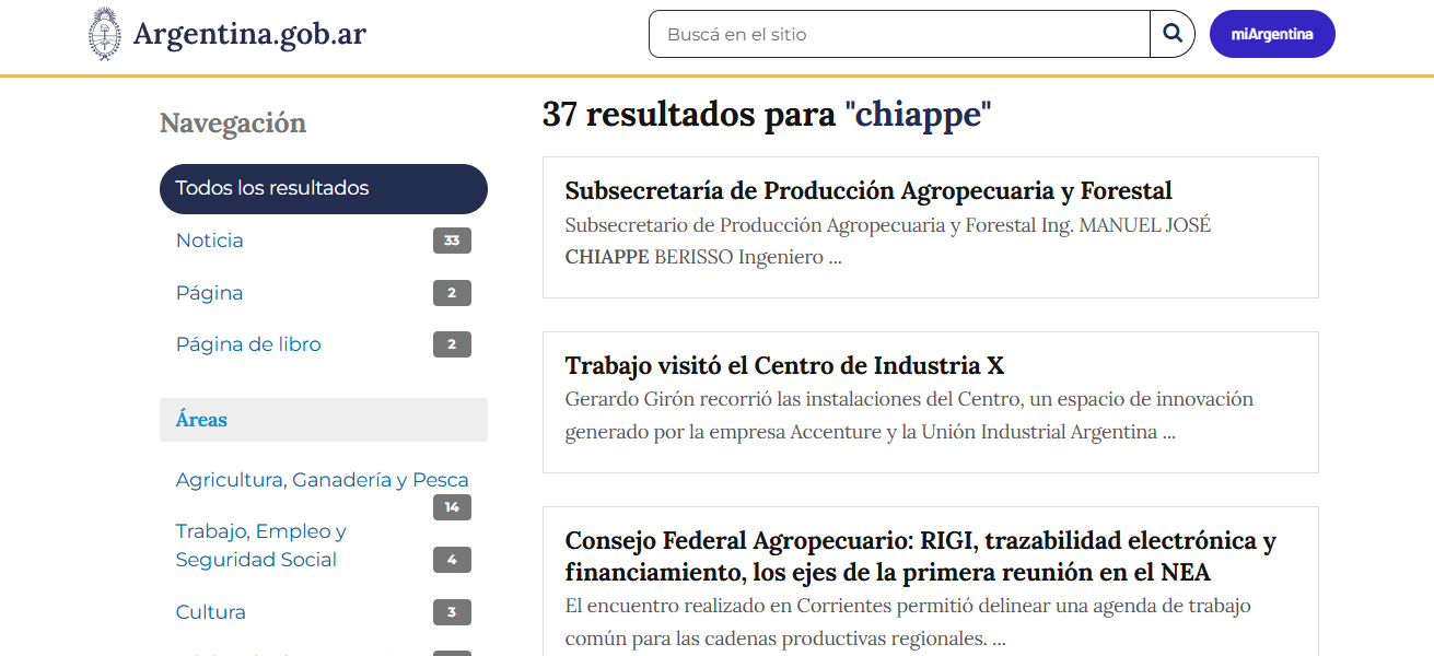 A partir de su llegada como número dos de la Secretaría de Agricultura, este funcionario añadió su segundo apellido al momento de firmar disposiciones o presentarse en actos públicos: Chiappe Berisso. De todos modos, eso no le garantiza una gran aparición en las gacetillas publicadas en la plataforma oficial, donde aparece mencionado solo en 37 ocasiones. Su rol está más orientado a mantener buenas relaciones con las entidades agropecuarias y los gobiernos provinciales mientras espera que sea el Ministerio de Economía donde se decidan las cosas.