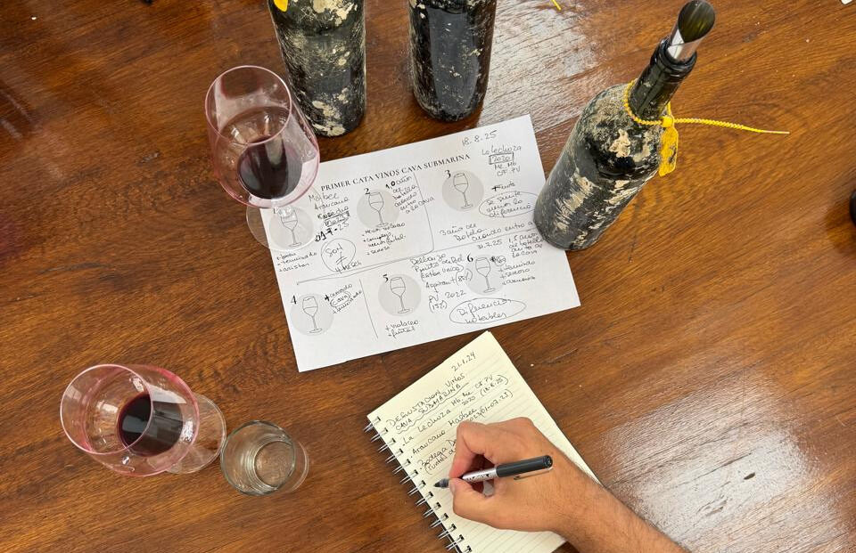 Finalizada la primera extracción, profesionales, enólogos y bodegueros rionegrinos realizaron una cata técnica a ciegas, en la que se compararon los vinos “marinos” con una muestra testigo, del mismo lote pero añejado en las cavas terrestres.