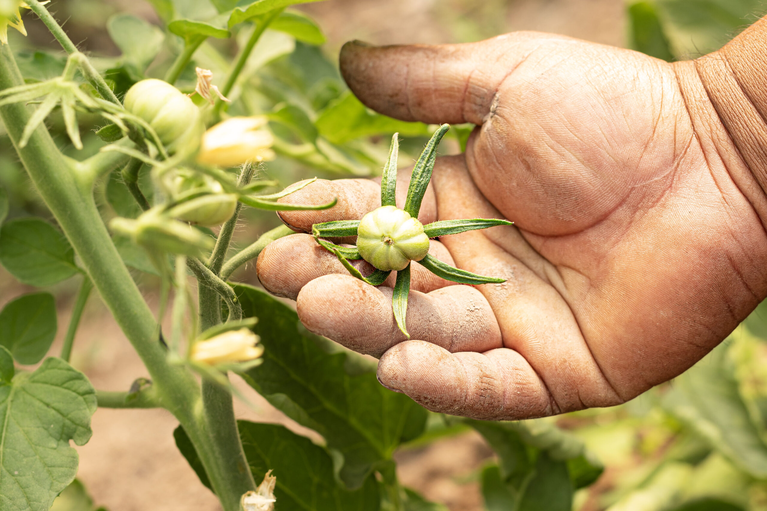 “El tomate industrial es de crecimiento determinado. Queda como un rastrero, al que solo podes regar, acercar a la tierra y fertilizar. No tiene otro tipo de labores. En las grandes extensiones, ya lo tienen bastante tecnificado. En el caso del tomate criollo, en cambio, el crecimiento es semi-determinado o indeterminado, lo que quiere decir que la planta crece, crece y crece, por lo que la tenés que conducir. Generalmente se hace con cañas o alambres. Es una tarea totalmente artesanal y muy laboriosa. Y es un tomate con menor vida útil, unos tres días, distinto al del supermercado al que se le suprime el gen de producción de etileno, que es el madurador natural de frutas y de las hortalizas”, detalló Sance.
