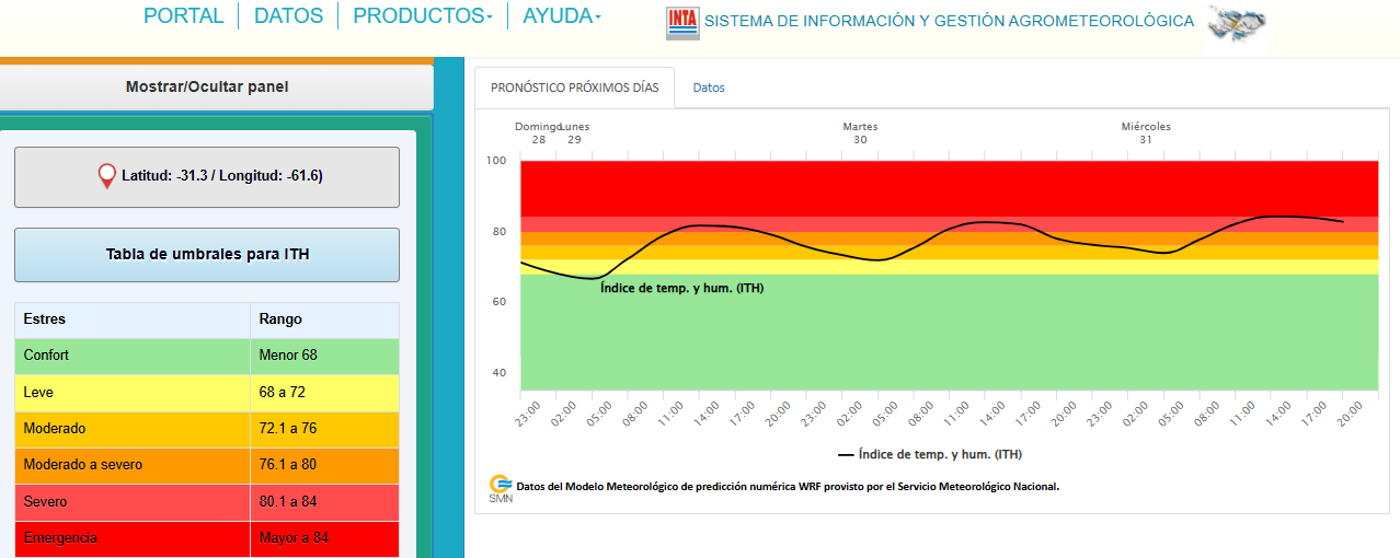 El ITH varía según la radiación solar y la velocidad del viento, y su interpretación también depende de la categoría de los animales. En bovinos de carne, un ITH igual o superior a 75 ya alerta sobre posibles efectos negativos, valores de 79 señalan peligro y por encima de 84 se considera una situación de emergencia. En bovinos lecheros, un ITH superior a 72 se interpreta como nivel de alerta, aunque algunos autores consideran un umbral más bajo.