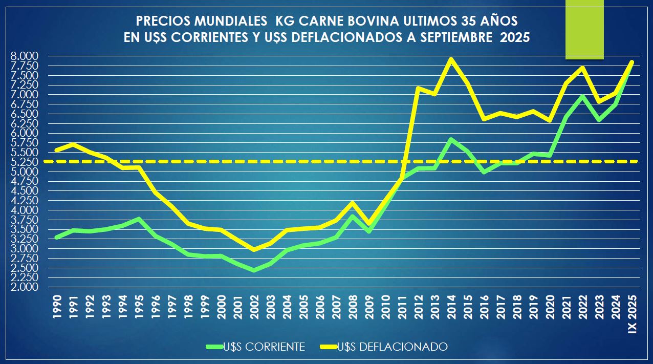 Adicionalmente, en agosto pasado el gobierno de EE.UU. introdujo un arancel del 50% contra Brasil, que bloqueó de facto el ingreso de carne bovina de ese origen , lo que potenció el efecto alcista en el mercado de EE.UU. El mismo fenómeno alcista se está registrando en otros mercados clave, como es el de la Unión Europea.