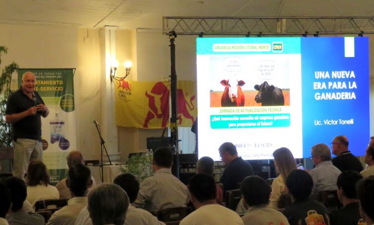 “En la ganadería argentina tenemos por delante un escenario de precios de la hacienda y rentabilidad como no hemos visto en el pasado: el éxito y la consolidación está en nuestras manos”. Así lo afirmó el analista ganadero Víctor Tonelli durante una charla ofrecida en una jornada técnica organizada por la región CREA Litoral Norte en la sede de la Sociedad Rural de Curuzú Cuatiá (Corrientes).