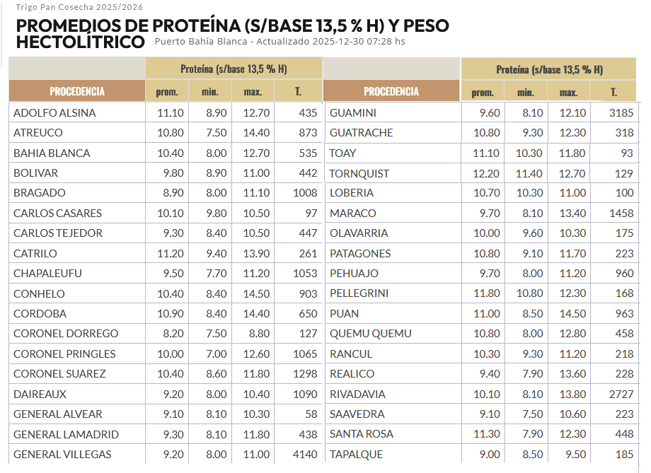 Los menores rendimientos logrados en el sudoeste bonaerense y sur de La Pampa –producto de heladas intensas y restricciones hídricas– son precisamente los que permitieron generar en la región partidas con mayores tenores proteicos (un alivio para la industria molinera regional).