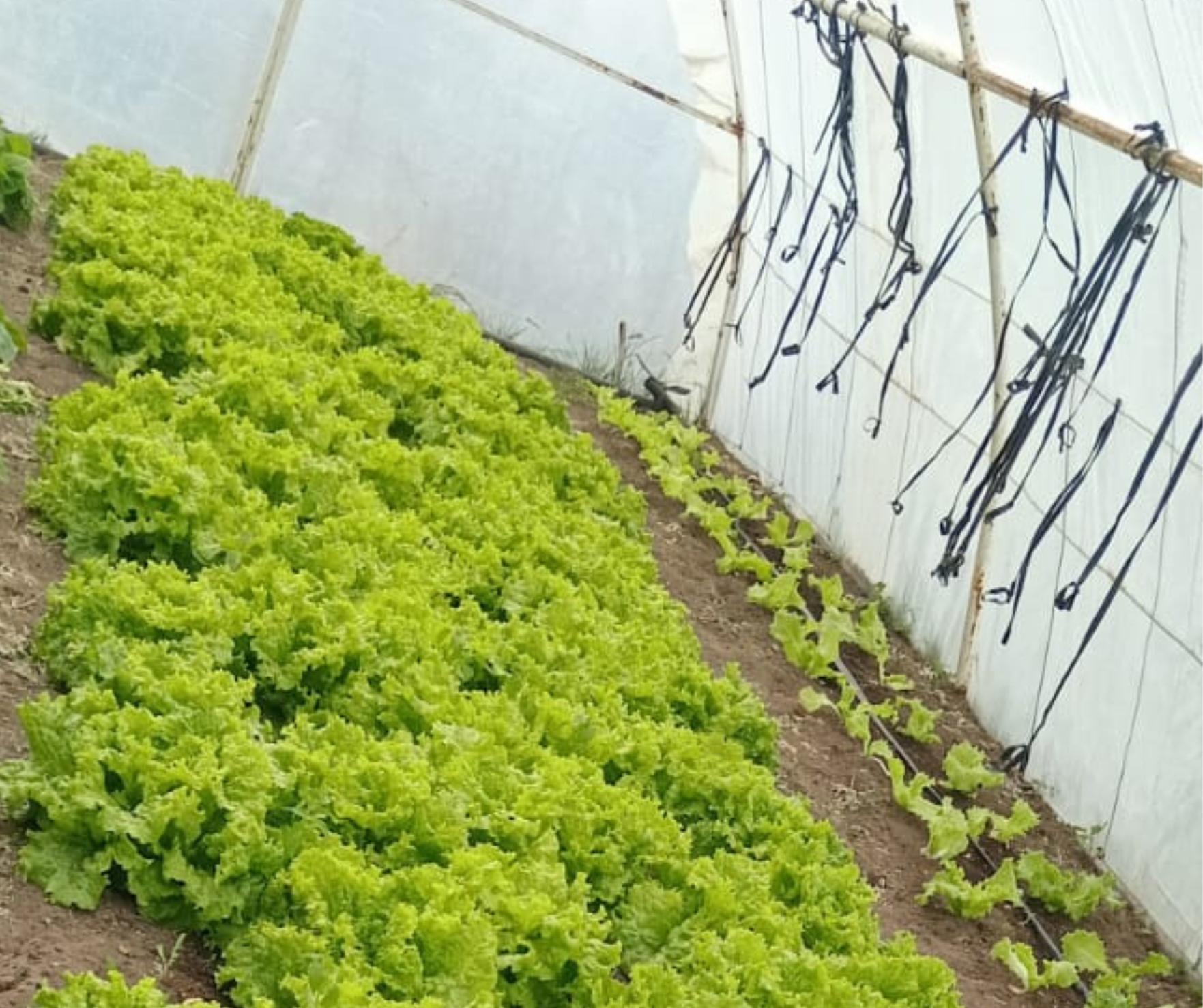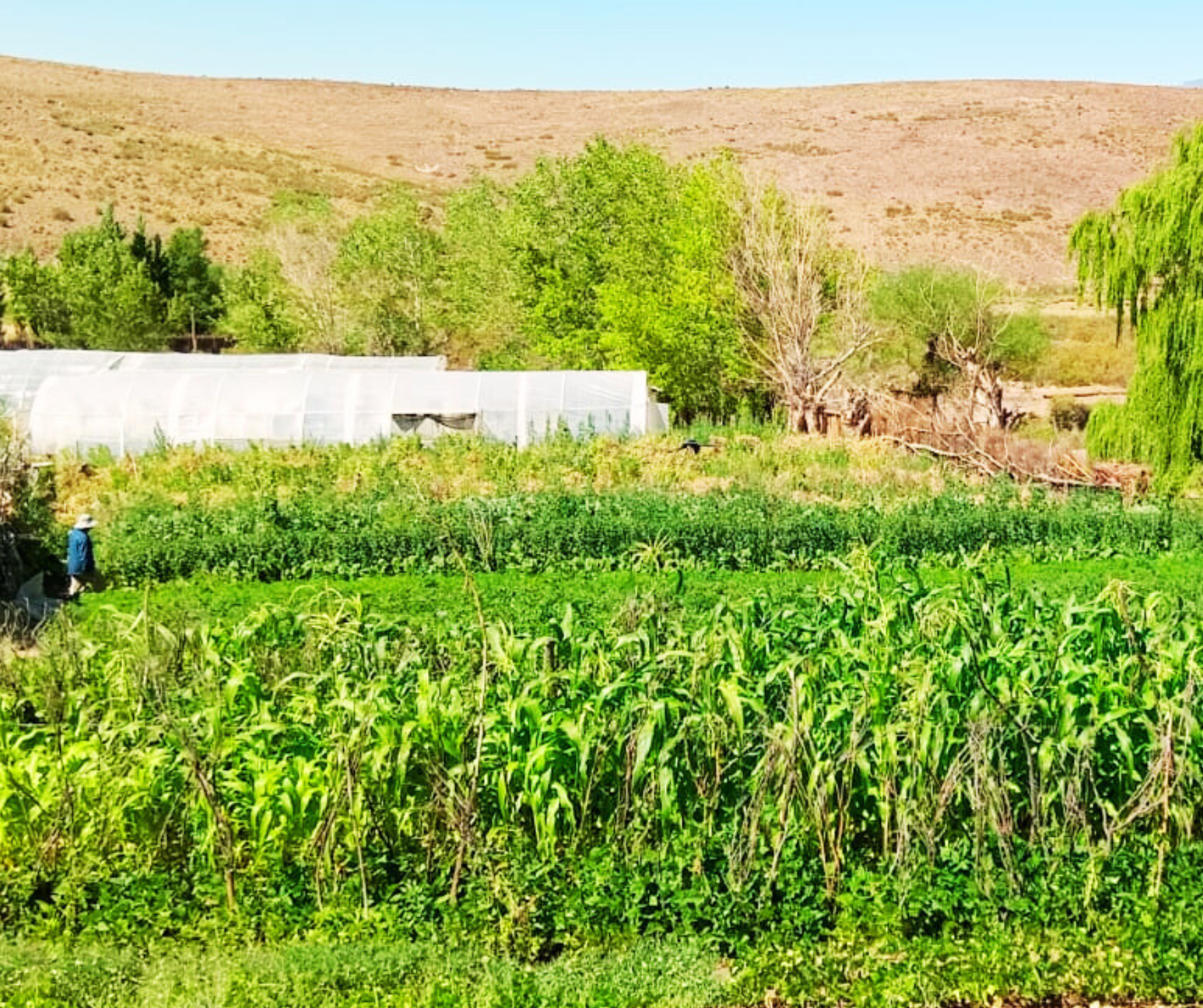 Habitan en Huarenchenque, un paraje ubicado a 30 kilómetros de la localidad y parte de su innovación es utilizar polietileno en suelo para el control de malezas y mantenimiento de la humedad en su invernadero, logrando una sustanciosa producción hortícola agroecológica.