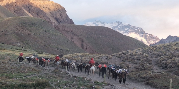 “Tenés dos recorridos diferentes. En la Quebrada de Horcones hay dos campamentos. Uno es Confluencia, que es un recorrido corto, de unas dos o tres horas, y tenés Plaza de Mulas, que es un recorrido largo, que son como ocho horas, a 4200 metros de altura. Esos se hacen en un día”, relata. “Pero por la Quebrada de Vacas, suben y bajan en tres días, Plaza Argentina hasta 4300 metros, pero son más o menos 40 kilómetros de exigente recorrido. Son 1.000 mulas las que hacen, aproximadamente, 14 mil tramos de estos recorridos, durante una temporada”.