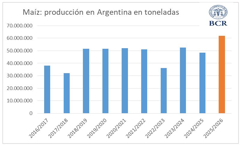 La primera estimación de la cosecha argentina de maíz 2025/26 apunta a la posibilidad de obtener una producción récord de 62 millones de toneladas.