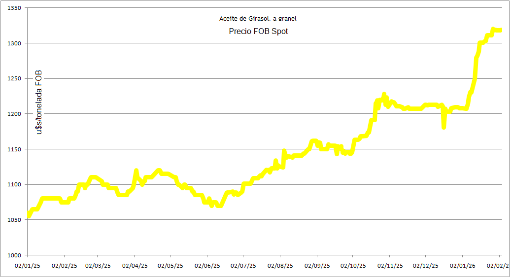 En ese particular contexto, los originadores de aceite de girasol y también de semilla están buscando mercadería de manera intensiva en la Argentina, lo que se evidencia en los precios FOB de ambos productos.